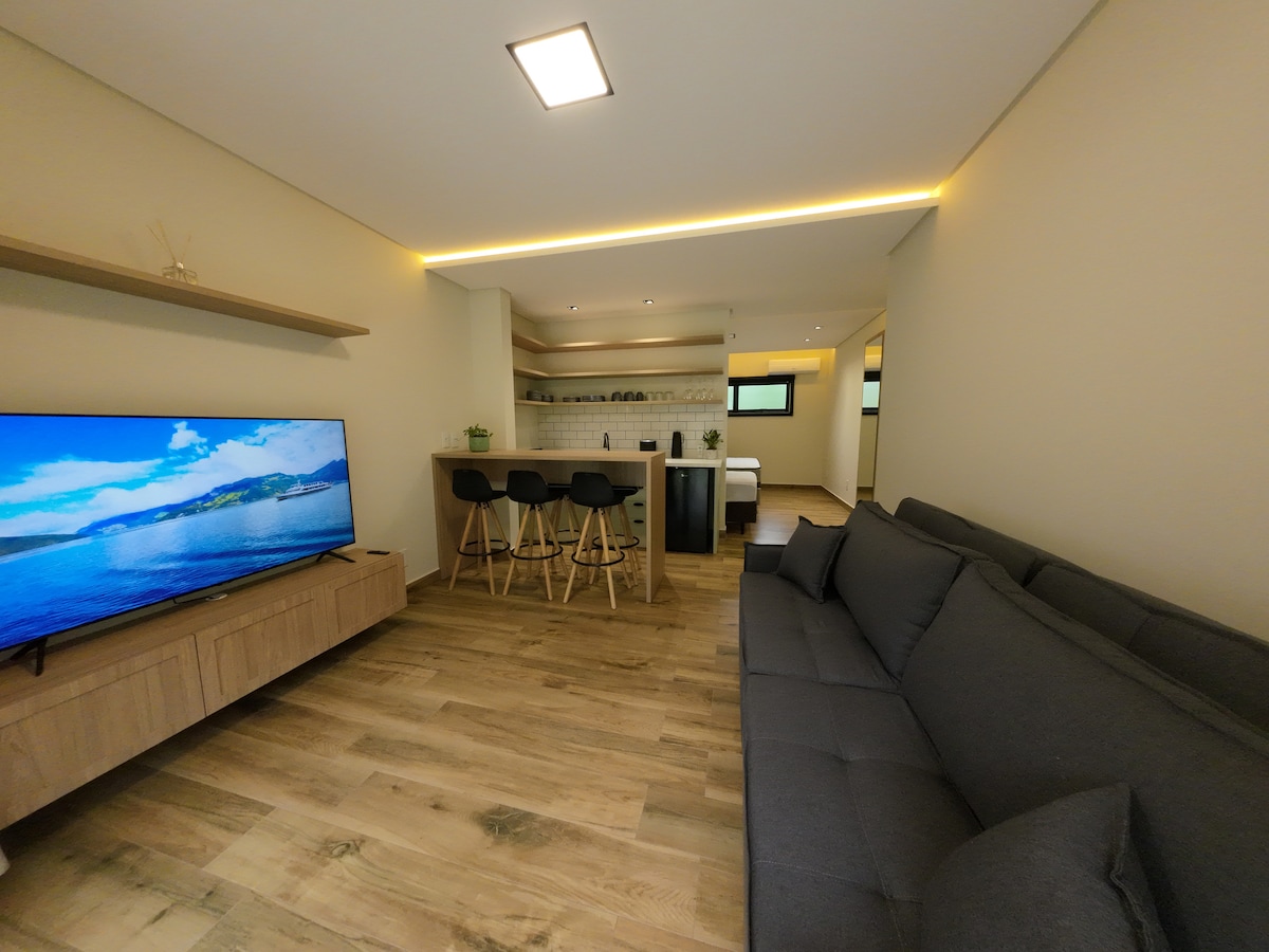 這間單間公寓是那些喜歡擁有日常生活整合和實用空間的人的現代概念,對於那些想要休息和放鬆的空間,甚至做家庭辦公室的人來說,它是理想的。 它位於我們房子的後面,完全的隱私和舒適。 此外,我們提供浴巾、牀上用品和毯子。 有雙人牀和輔助單人牀。 寬敞的獨立衛浴。