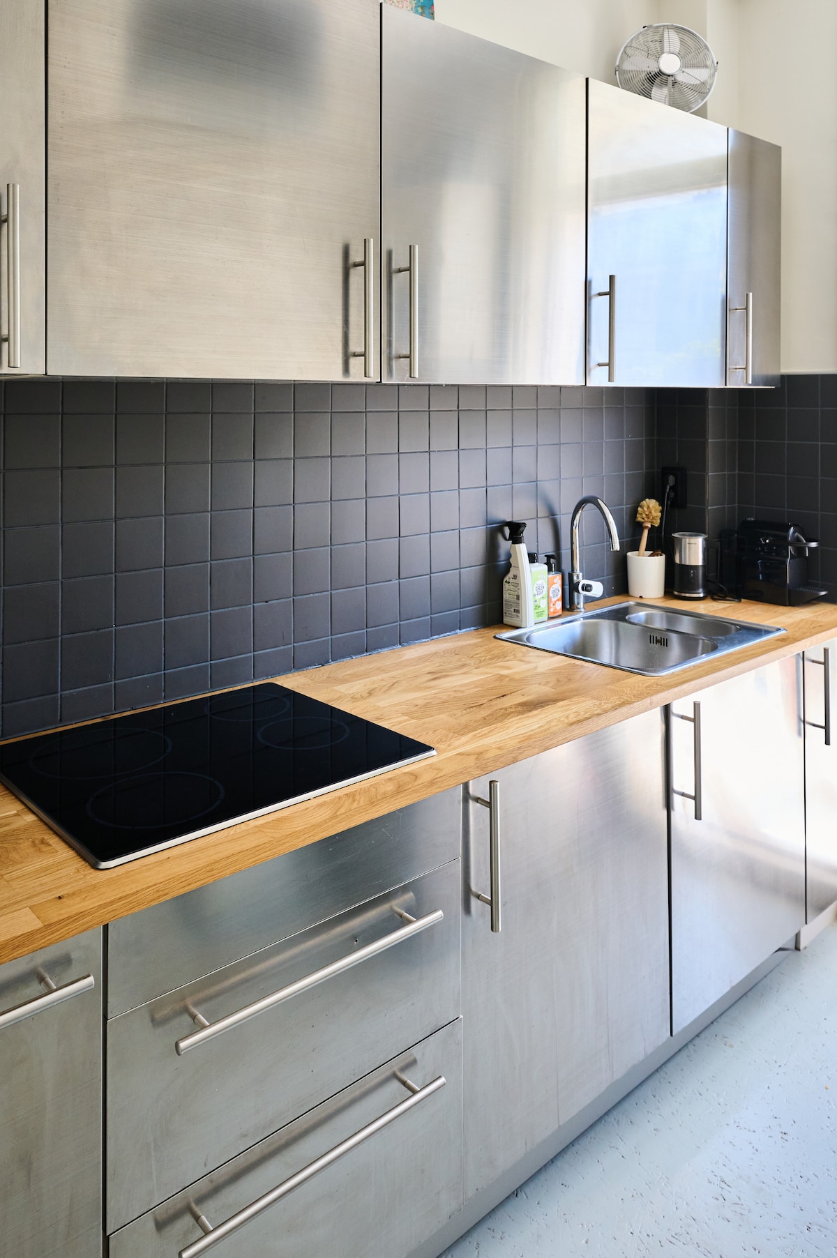 The deck-house and wheelhouse in the back of a former sailing cargo-ship van 1888 is transformed into a small apartment . The rest of the boat is a shop with sailing / marine equipment and a bunker station. The entrance is due to the age of the ship a small steep stair, keep that in mind. The surrounding is a lively harbor with sail-ships and cruise-ships. There is a parking available for €5 - a night very closeby. So enjoy the sound and movements of the water!