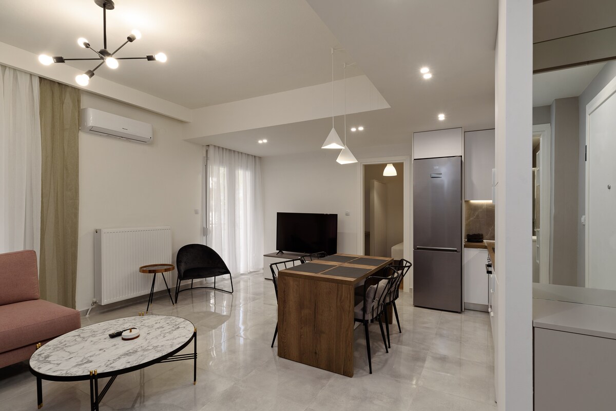 豪華、舒適、最近翻新的公寓,距離塞薩洛尼基新海灘僅2步之遙,散發著優雅和寧靜,等待著您! 位於馬其頓宮殿飯店區域,非常適合情侶、公司、專業旅客和有小孩的家庭入住。 配有空調和天然氣暖氣,最多可容納 6 人。 公寓位於一樓,由2間臥室、客廳、設備齊全的廚房、浴室和陽臺組成。