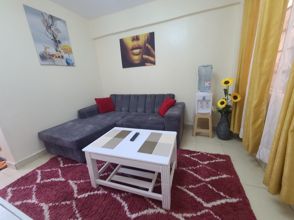 這間位於奈洛比西部的優雅一房公寓,地理位置方便,靠近 Sarit Center 和 Westgate Mall,距離中央商業區和肯亞國際會議中心 (KICC) 只有 3.5 公里。配備微波爐、冰箱和洗衣機等現代化家電。房客可以在客廳使用 Netflix 和 YouTube 放鬆身心,而臥室則設有配備熱水淋浴的浴室。其他設備與服務包括健身中心和充足的停車位。入住這間位於市中心的公寓,體驗精緻的生活。