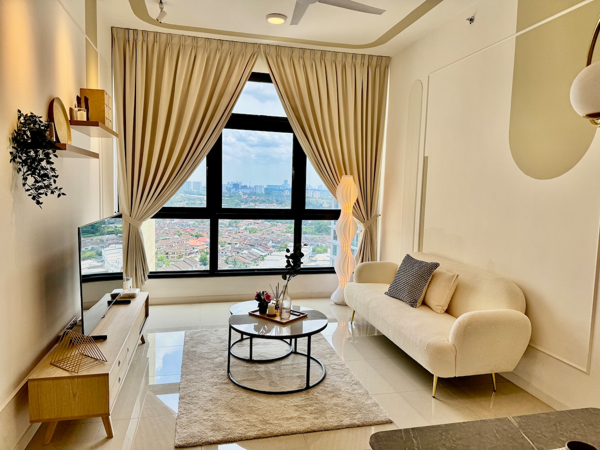 ✨在這個新裝修的平靜、時尚的空間中放鬆身心。✨ 時尚單間公寓度假屋,可入住2人,距離Paradigm Mall僅幾步之遙! 享受獨立臥室、私人陽臺和現代舒適,同時在門口就有購物、餐飲和娛樂。 前往新山市和Skudai區域周圍的其他城鎮和新加坡堤道都很方便,這裡是工作或玩樂的完美基地!