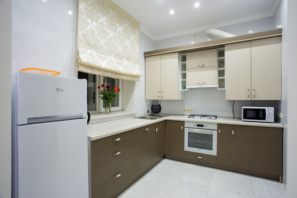 Квартира расположена на ул. Советской. Советскую еще называют маленькой Прагой – это пешеходная улица, по которой жители города и гости совершают прогулки, встречаются , здесь есть все, что Вам необходимо: кофейни, чайные, рестораны, пиццерии, бутики, Мак Дональдс, супермаркеты, аптеки, магазины, спорт зал и даже салон красоты. Несмотря на то, что это - самый центр города, квартира тихая и уютная. В квартире есть все, что вам может понадобиться: стиральная машина, сушилка, утюг, гладильная доска, фен, тостер, чайник, все кухонные принадлежности и многое другое.