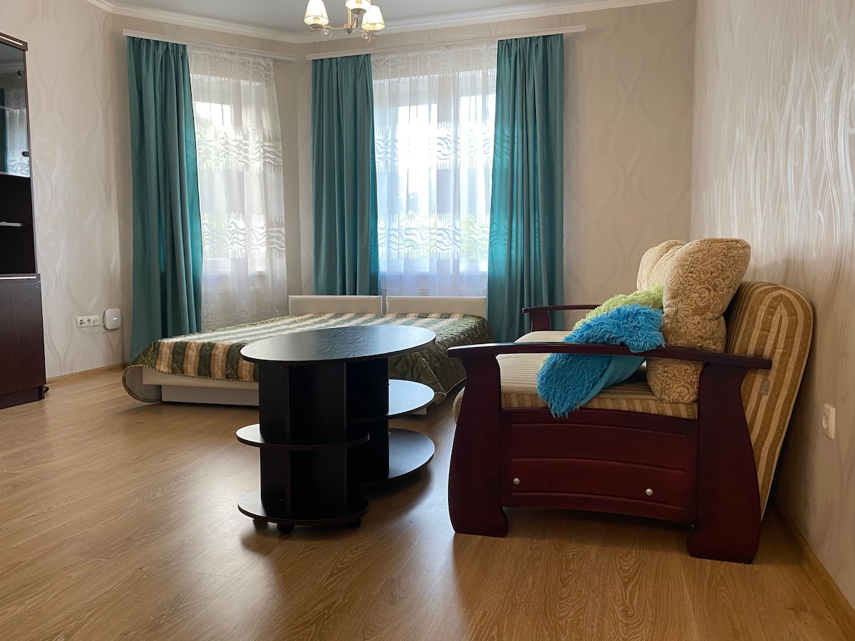 舒適的公寓,配有陽台和現代化的電器。 我們提供時尚舒適的公寓,讓您住得舒適。 您會發現一個寬敞的陽臺,可以欣賞新鮮空氣。 院子裡有一個遊樂場,對於有小孩的房客來說特別方便。廚房配備了冰箱、微波爐,以及烹飪所需的一切。 WiFi、50 吋大型智慧電視。 公寓裡有淋浴間、浴缸和馬桶。 大型閣樓床。超市距離10分鐘。