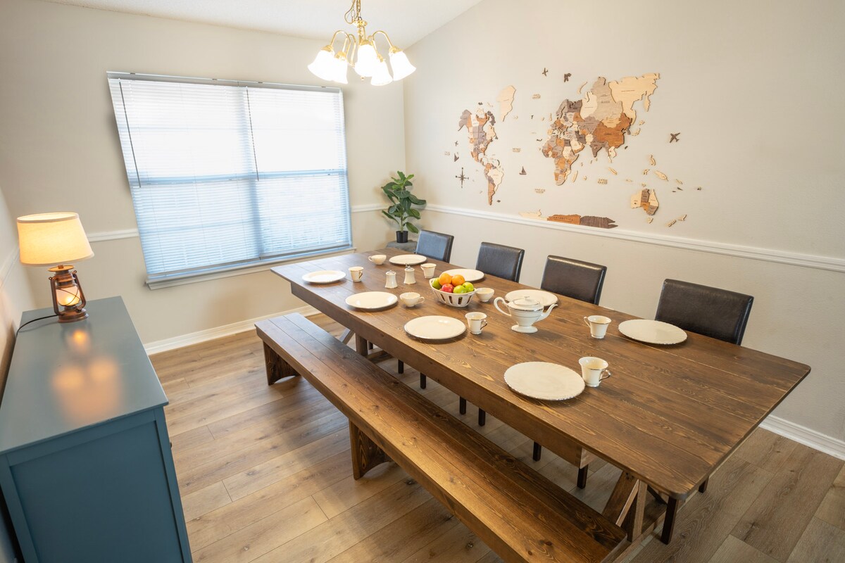 您的家位於彭薩科拉繁華的購物區中心,距離機場、海灘、醫院、早餐/咖啡店、餐廳、歷史悠久的市中心和購物區僅幾分鐘路程!全功能廚房、洗衣機和烘乾機、瓦斯烤架、車庫和私人停車位。非常適合商務差旅、探親、經濟實惠的海灘度假或只是路過。祝您在美國第一個定居點住宿愉快,並請務必在入住期間查看VisitPensacola網站的活動!