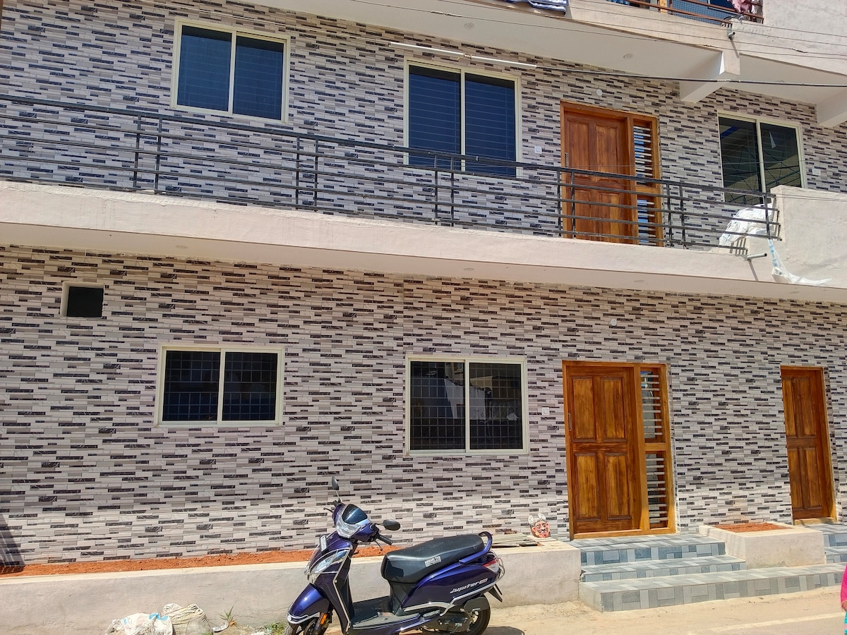 WELCOME TO YOUR HOME AWAY FROM YOUR HOME!!! This bright and stylish house offers the perfect blend of comfort and convenience—ideal for families and married couples seeking a relaxing getaway. Nestled in a quiet, friendly neighborhood, the home features a spacious open layout, a good kitchen, cozy bedrooms, and high-speed Wi-Fi. One of the highlights of the stay will be the serene view of Chamundi Hills. PLEASE NOTE: We do not accommodate bachelors and unmarried couples. BOOK YOUR STAY TODAY!