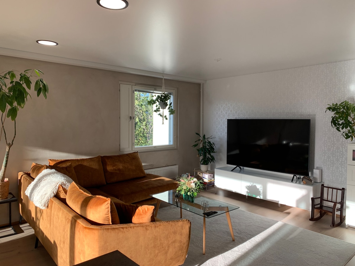 歡迎來到我們位於圖爾庫市中心的迷人公寓! 非常適合安靜的度假或高效率的商務差旅。 床為140厘米和90厘米,可合併成230厘米寬的床。 客廳還有一張沙發牀。 摘要 • 在我們舒適的沙發上放鬆身心,享受平面電視和高速Wi-Fi。 •私人三 溫暖 • 設備齊全的廚房 • 位於一個安靜的住宅區,但靠近市中心和大學 • 停車:室內免費停車 • 寬敞的陽臺