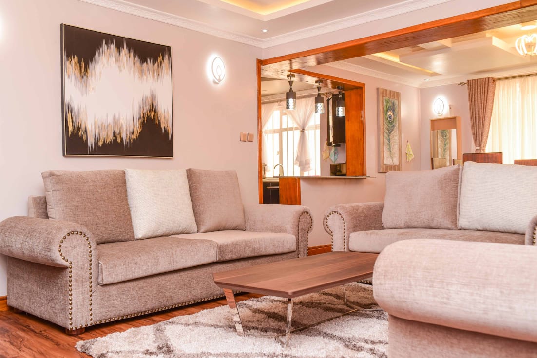 這是一棟舒適的4居室服務式別墅,位於奈瓦沙市中心,周圍有歷史、地理特色和娛樂中心,即奈瓦沙湖、奈瓦沙國家高爾夫俱樂部、Hells Gate。 Enashipai等。 別墅配備了所有電器。如有需要,可提供快速Wi-Fi、清潔服務和廚師,讓您留下難忘的住宿體驗。我們有更多像這樣的別墅,以防大型團體入住。