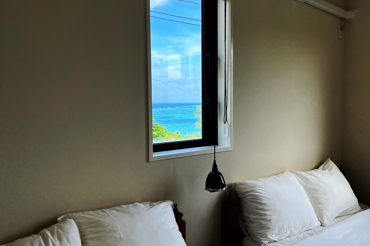 它有3間臥室,可容納大量成人。在客廳、臥室和露臺享受愉快的海風,欣賞海景。 有1張半雙人床、3張單人床和5張其他床墊。 它還有一間海景浴室。高天花板、美景和地理位置。非常適合情侶、有小孩的家庭和團體。 有一個免費預留的停車位。 在您住期間,中間清潔,不更換毛巾。 這裡有很多大自然,設施周圍的區域也被許多植物包圍,因此昆蟲可能會徘徊在設施和房間內。我們會盡一切努力在入住前進行檢查,但如果您在入住時遇到昆蟲,請自然歸還。 我們建議您在昆蟲期間或夜間不要打開窗戶。 在沖縄,壁虎也被稱為「管家」,據說不會被消滅為「房子的守護神」。如果你看到它,請輕輕看著它。