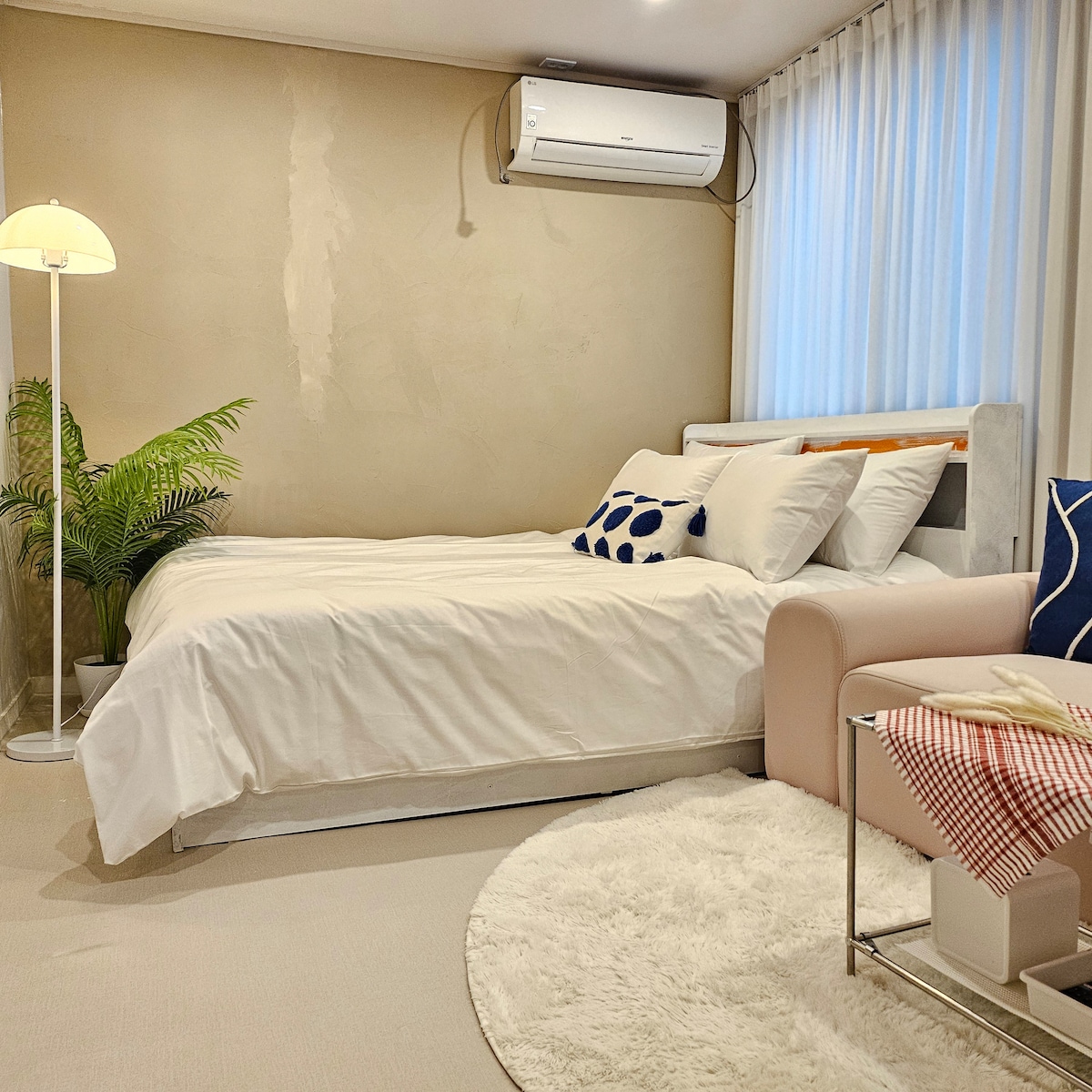 [Money stay] 단체 여행에 적합한 넓은 공간과 세련됨을 모두 갖춘 숙소입니다.-투룸+거실 최대6-8인 가능합니다 . 로봇청소기가 청소하고있고 옷걸이가 방마다 배치되어있습니다 에어컨도 셋팅완료되어있습니다 세탁기 와 건조기 사용가능합니다 여름에는냉방및에어컨 겨울에는난방 보일러로 잘되어있습니다 . 요리도할수있는공간및 동선이되어있습니다 tv도 설치가되어있습니다 인터넷 유선도 되어있고 노트북 랜선연결가능 , 와이파이 설치되어있습니다 일층입니다