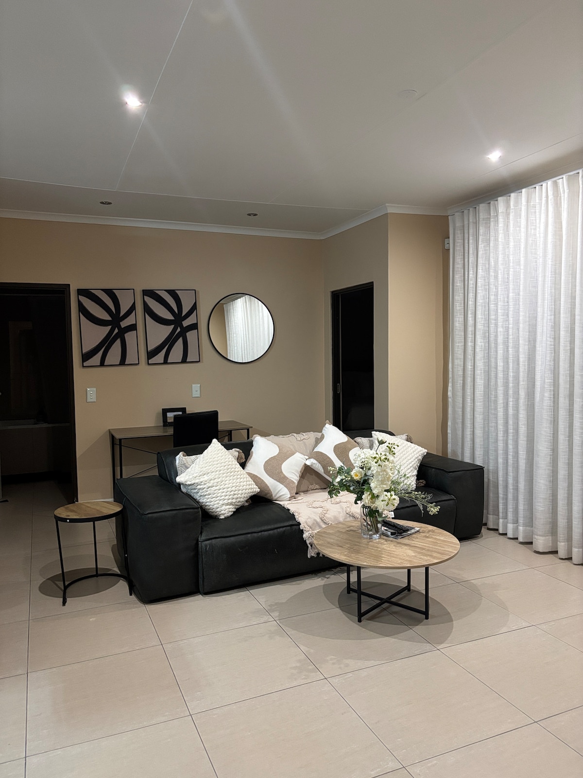 Spacious luxurious cabaña (cottage) centrally located in Potchefstroom 2,8km NWU main-gate 4km PUKKE HP Institute 1,3km Mooi RiverJunction (Woolworths/Checkers/Dischem) 3,6km MooiMed 5km McArthur Stadium 6,6km Mooi River Mall Spur across the road 2bedrooms+2bathrooms Stylishly & convenience cottage in 24h security complex, private entrance, safe parking Open-plan living & fully equipped self catering kitchen Nespresso machine FreeWifi OutdoorBraai +Veranda OutdoorGym BackUpGenerator