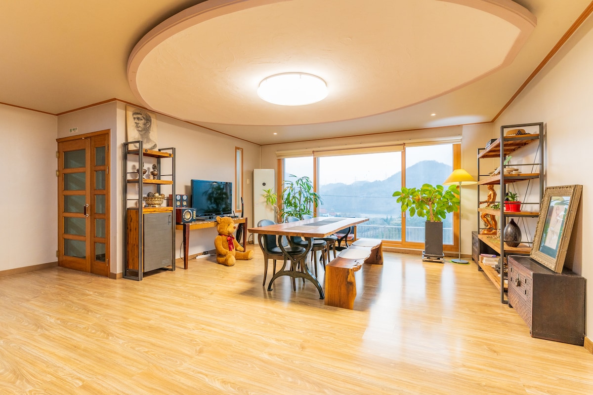 您好:) 這是春川的S View(天空景觀)。 S View 位於一個安靜的村莊,您可以獨自使用藍色花園。 當您需要休息時,呼吸新鮮空氣,欣賞美麗而寧靜的山景,為您提供最佳的休息。 在Sview的夜晚,無數的星星像雨一樣落下,與親人一起觀賞夜空中的星星,感受感性。 您可以在Sview獨特的豪華燒烤區輕鬆享用美味的燒烤 這是一個可以創造難忘回憶的S'View民宿,如家庭旅行、情侶旅行、朋友旅行等^^