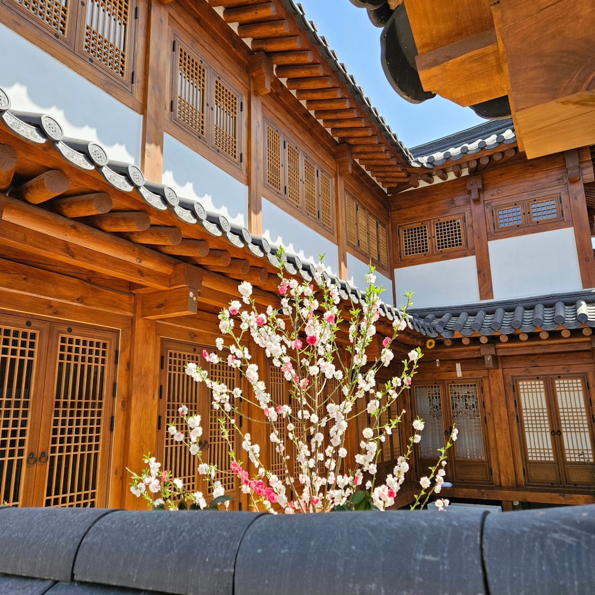 首爾韓屋北山景(房間名稱:Saimdang Guihan Gdae:獨棟房屋,1、2 樓(30 平方公尺),3 張床、寬敞的客廳、8 人座餐桌)