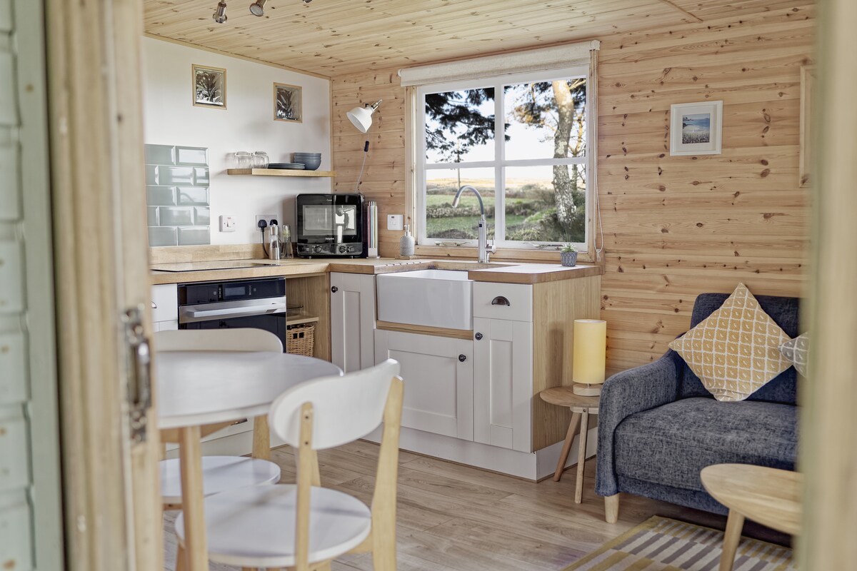Set atop a Cornish moorland hill between the iconic cobble-streeted St.Ives and the working harbour-town of Penzance. Willow Green Cabin not only has breathtaking sea views across Mount's Bay that take in St. Michael's Mount and the famous Lizard Peninsular but also extensive pastoral views over a vast part of Cornwall, spreading out from ancient tin mines, right up past Redruth and as far as the famous clay pits of St.Austell. Each window in this beautiful wooden cabin offers a unique view.