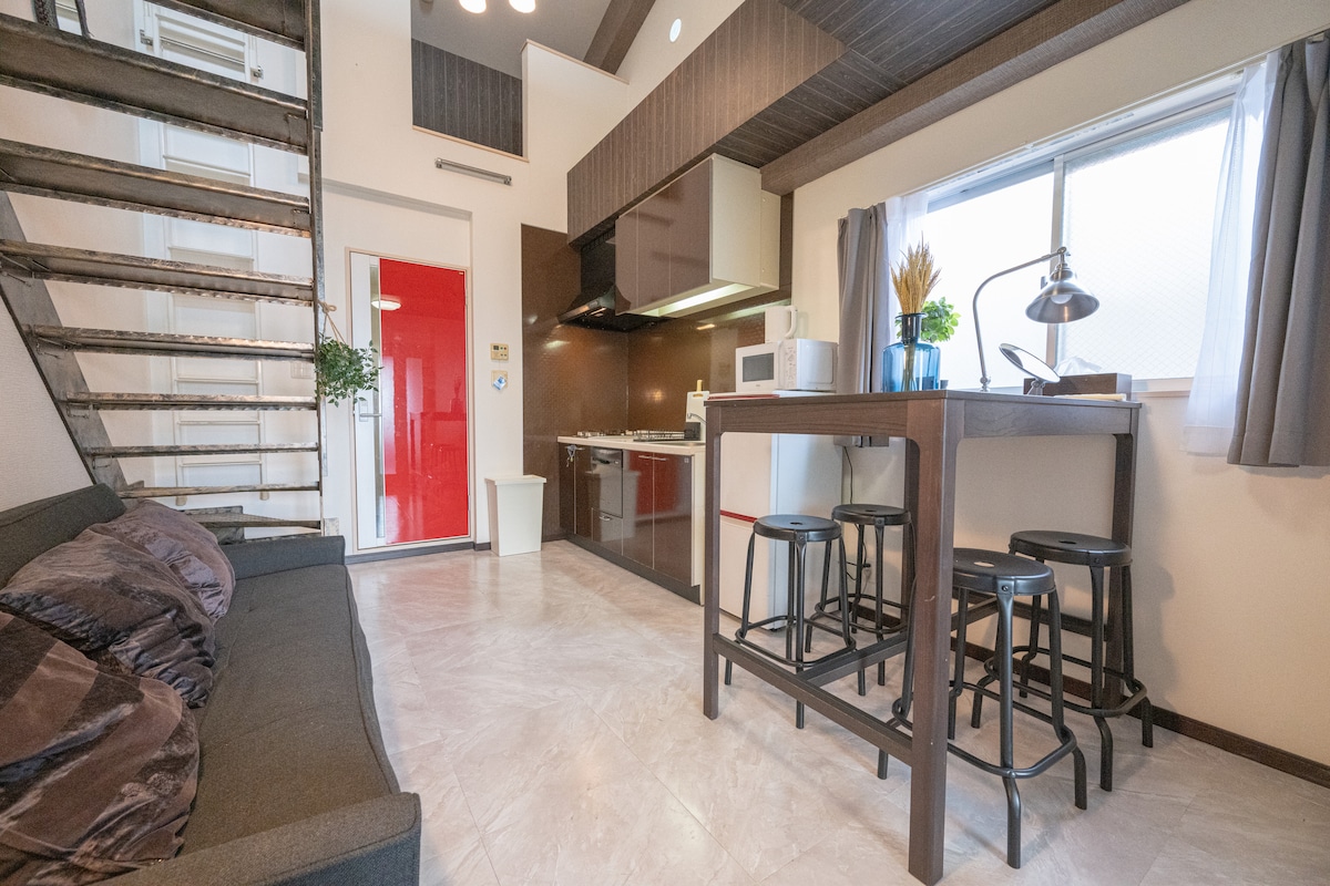 ☆特色 -僅限在城市迷人街區的一個團體(獨棟房屋) -每層樓都有臥室,所有臥室可供2位以上房客入住 -位置方便,輕鬆前往大阪的地標和市中心,無需從最近的火車站轉乘即可直接前往下面的著名景點! ! 京瓷穹頂、大阪城公園、心齋橋站、梅田站、天王寺站等。 1.適合團體旅程和長期住宿,推薦單人入住 2.員工會為您辦理入住手續,並提供鑰匙,並帶您參觀設施 (也可以自助入住) 3.舒適的空間可放鬆身心,1張額外的床最多可容納5人 4.獨特的結構,可從地下室進入二樓 5.距離最近的火車站步行1分鐘! 輕鬆抵達道頓堀和大阪城等地標 6.大樓一樓附設精緻的日式餐廳 此房源已翻修成可愛的起居空間,部分房屋已被房東家族居住多年。與公寓或飯店不同,您會在寬敞的空間中感到舒適。請享受這棟房子的美好,從旅客的角度來看充滿舒適感。