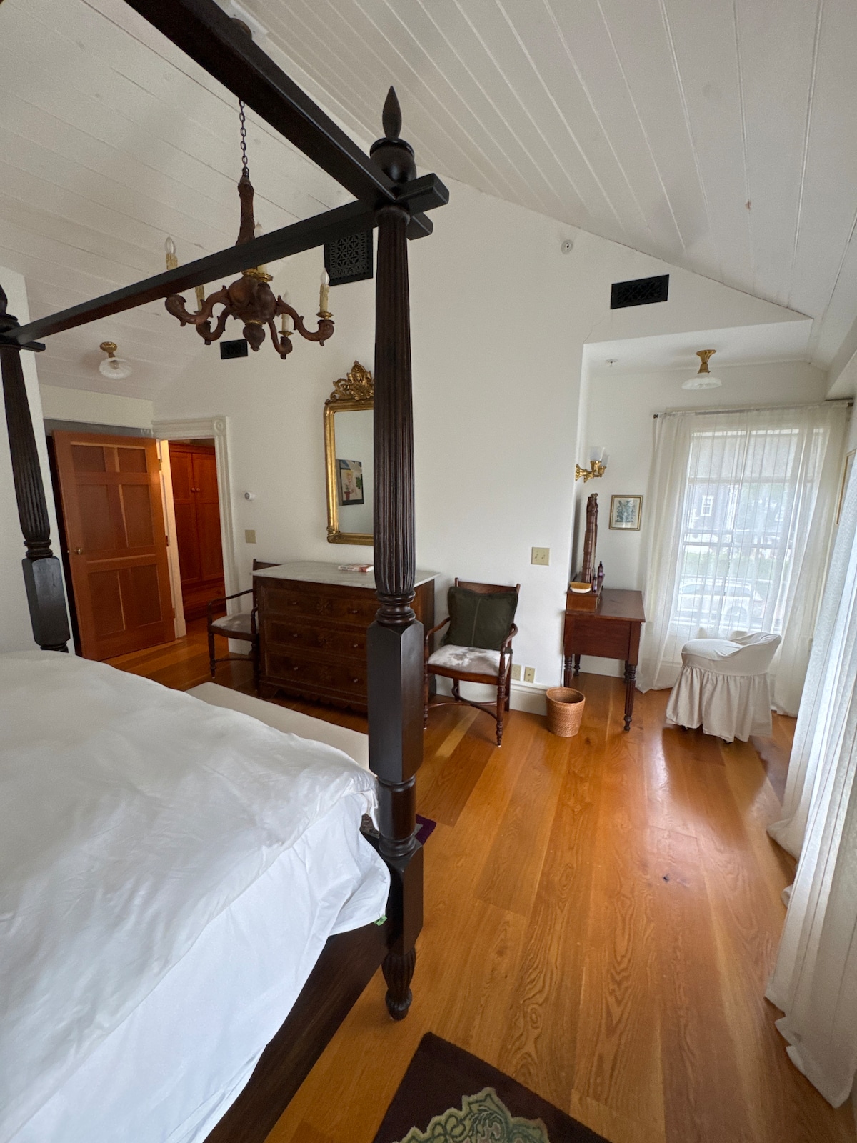 A unique upside down two bedroom cottage with a deck and a view of the Harbor. A curated space with antique beams, handcrafted doors, flooring and cabinetry, antiques and fine art. It all lends a vintage feel to an up to date with all the amenities home. There is a private small side yard and garden with outdoor grill and seating. This is not a party house, it’s a sensitive house, I live right on the property, adjacent to the cottage, you have full privacy but no shenanigans.