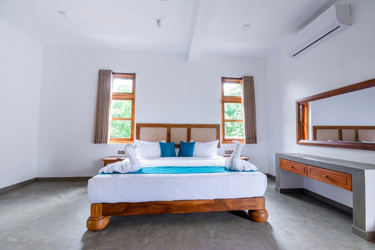 入住我們位於斯裏蘭卡Kabalanaroad Ahangama的豪華雙人房,體驗最終舒適。 裝潢時尚的房間配有寬敞的雙人牀、空調和俯瞰泳池的私人露臺。 當然有空調、WiFi、現代化的浴室。 因此,這是情侶或尋找放鬆的旅客的完美度假勝地
