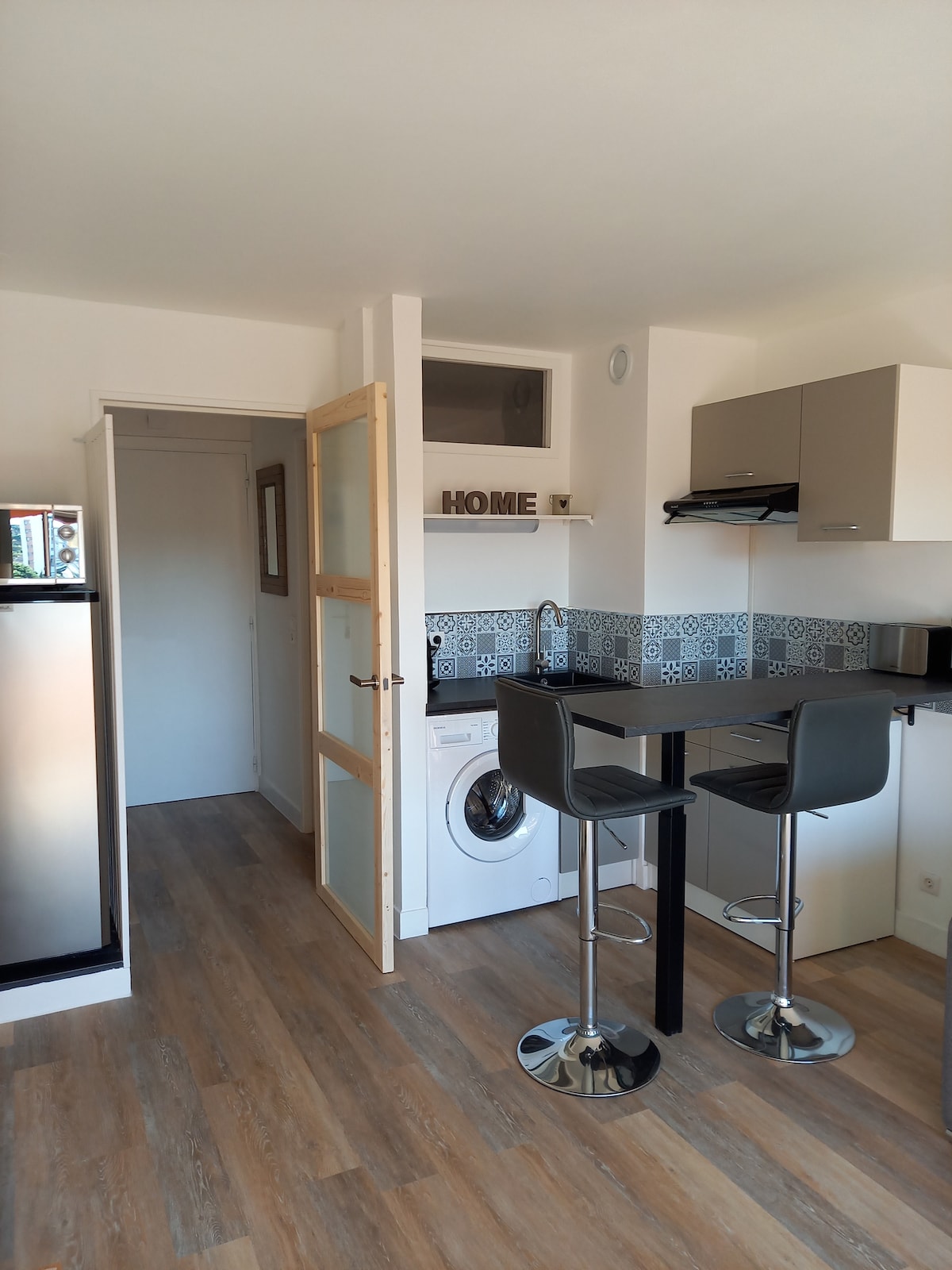 28 平方公尺公寓,附露台,距離海灘 50 公尺。 1 間臥室,配有一張雙人床 1 間客廳,配有沙發床 1 間浴室 + 獨立廁所 1 個遮蔭露台 提供毛巾和床單。 空調住宿 可攜帶寵物 1 個有圍欄的私人停車位 + 公寓前有免費公共停車位 下午3點後入住 上午 10 點退房 請隨時與我們聯絡! 期待在陽光下歡迎您來到我們的公寓!