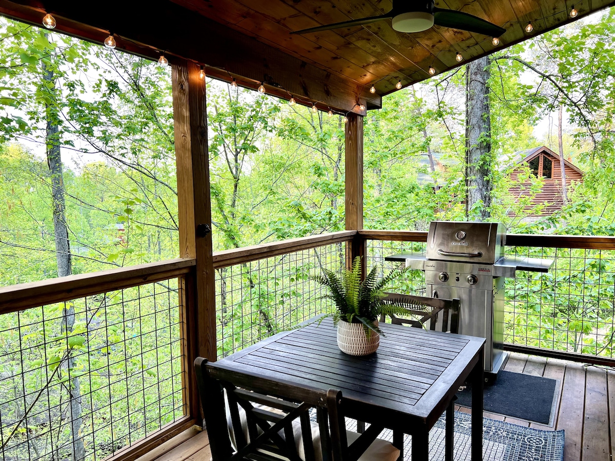 歡迎來到小屋Haiku —一個私人、舒適的度假勝地,專為尋求和平的Smoky Mountain度假勝地的情侶和蜜月旅客而設計。 享受現代舒適、安靜的樹林環境,沒有陡峭的山路。 地理位置優越,距離Dollywood和Pigeon Forge僅5分鐘路程,距離Gatlinburg和大煙山(Great Smoky Mountains)僅20分鐘路程。 靠近所有地方,但又隱蔽—是放鬆身心、重新連結和一起放鬆的完美地方。