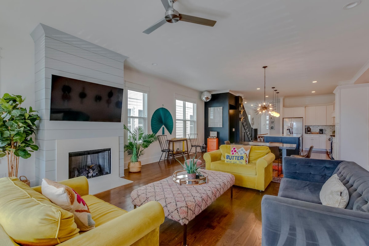 體驗音樂之城的最佳風格! 歡迎來到我們位於納什維爾東部的現代三層樓房源,距離市中心只有幾分鐘路程,周圍有許多城市中最時尚的景點。這間房源擁有高端裝潢、超大窗戶,讓自然光線充滿整個空間,還有私人屋頂露台,可欣賞迷人的天際線景觀。這裡是放鬆身心、充電休息的完美之地,讓你沉浸在納什維爾的一切之中。