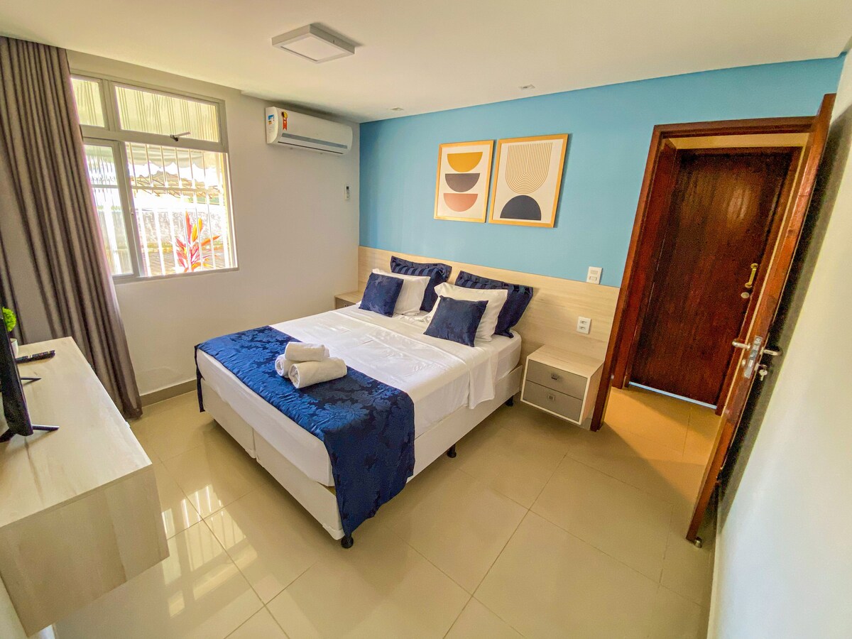 在這個寧靜、安全的空間中放鬆身心,獨享蓬塔內格拉海灘的沙灘。 距離餐廳、酒吧、小市場、手工藝品商店、「forró」舞蹈景點、購物中心、會議中心和警察局僅幾步之遙。 這是所有旅程的完美起點。 公寓設有陽臺,可欣賞海景和「Careca」山; Wi-Fi、空調、智慧電視、基本設備和餐具。 可使用停車場、花園、遊泳池、露臺和通往海灘的樓梯。
