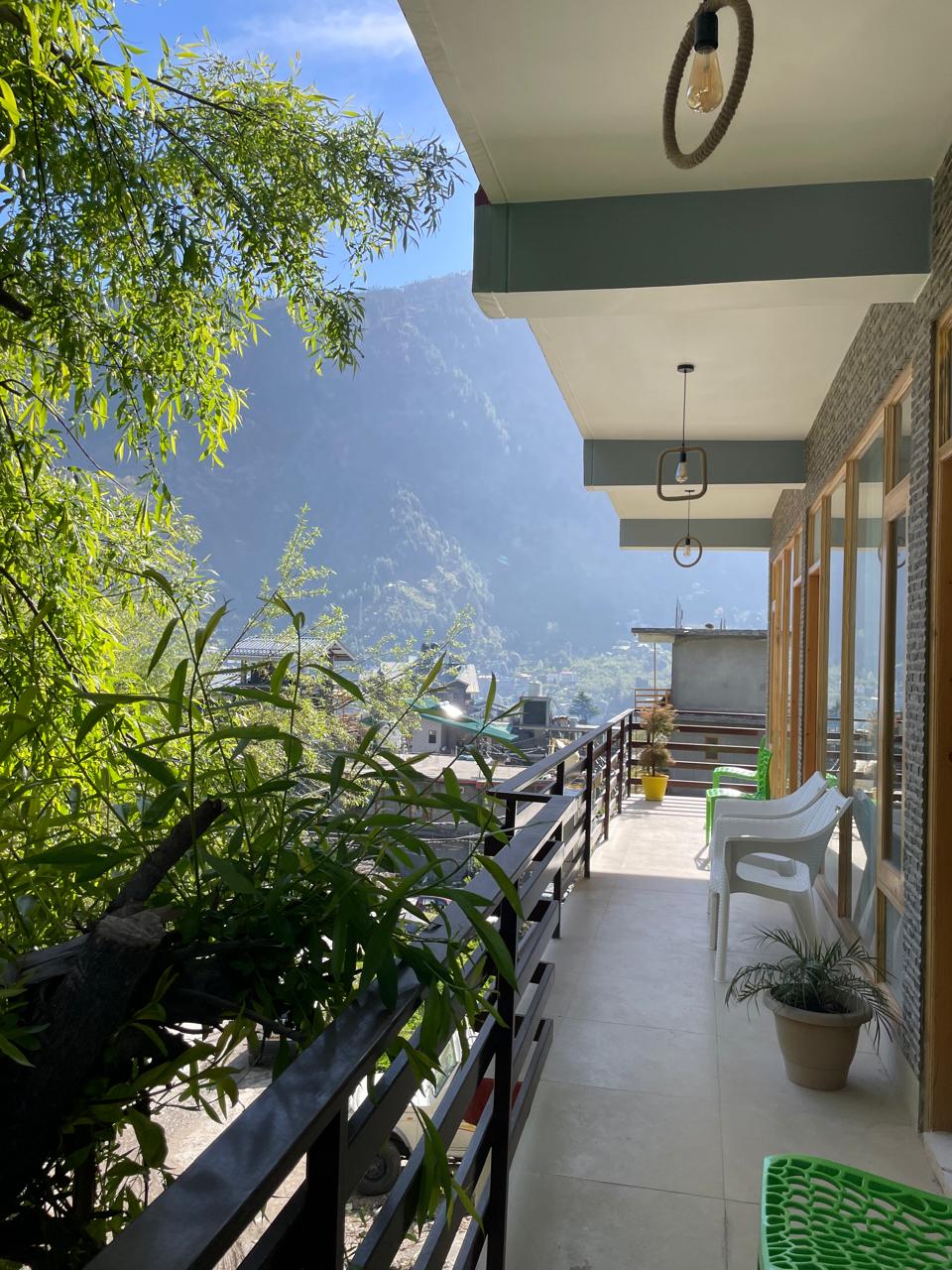 This home-stay is located at the most stunning views of manali. Walking away from hadimba temple and the nature walk. 3 kms from the mall road. 2 kms walk to the old manali bridge. Our property is 2 cottages where we have these floors of 2-3 rooms each with private balconies and beautiful outdoor seatings. This one is at first floor. We have a in house cook where you can get anything made on order or choose from our in house menu.
