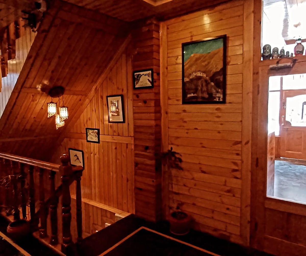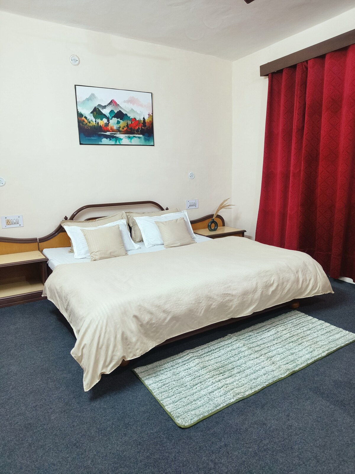 超級舒適的Duplex套房,有窗戶,可欣賞山景。 下層有一間臥室,有一間洗手間和通往上層臥室的木製樓梯。 這裡有一張沙發,位於上層,可供4-5位房客坐下享用美食。 【房間內容】: -抵達時提供礦泉水 -免費Wi-Fi、停車位 免費早餐(早上8:30至10:30)僅在用餐區提供(無客房服務) -加熱器需額外收取300/- rs費用 房間位於三樓 備註*無電梯*