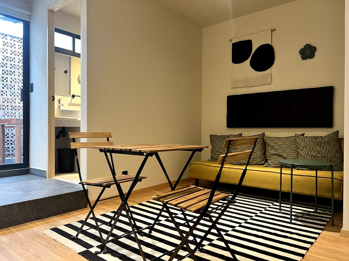 我們的單間公寓距離科約阿坎(Coyoacan)的主要廣場僅10分鐘步行路程。 全新且優雅,非常適合放鬆和遠距工作。 住宿位於典型的科約阿坎(Coyoacan)小鎮(Cuadrante de San Francisco)。 來探索科約阿坎的魔力和各種活動。