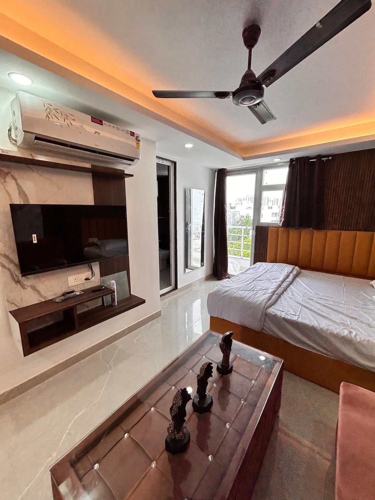 - 1 間臥室公寓,附設設備齊全的小廚房和浴室,位於住宅大樓的一樓。 -所有必要的設備與服務,讓您享受順暢的體驗。 -更換毛巾和洗漱用品。 -配備55英寸電視的WiFi (包括Netflix、Amazon Prime和Hotstar等)。 - 適合情侶入住。 -距離新德裏IGI機場6公裏。 -距離印度航空學院1.3公裏。 -距印度脊柱傷害中心1.4公裏。 -距離DLF Emporio Mall、Vasant Kunj 3公裏。 -距離Fortis醫院4公里