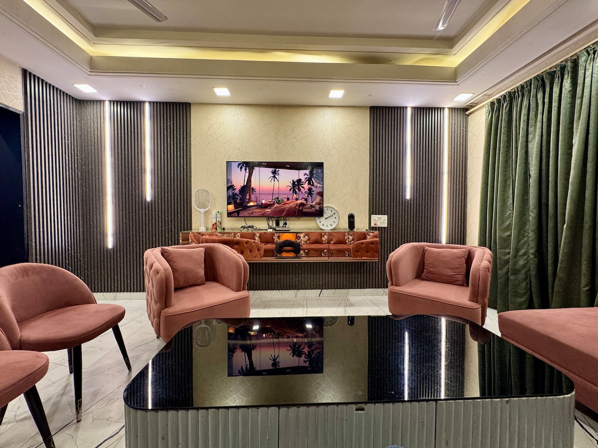 我們迷人的房源坐落在德裏市中心,在繁華的城市景觀中提供了寧靜的聖殿。 走進我們的私人天堂,裝飾著鬱鬱蔥蔥的綠色植物和季節性水果 在大廳中沉浸在迷人的氛圍中,在我們的12人沙發上散發柔和的光芒,邀請您沉浸在幸福的放鬆中。 對於現代遊牧民來說,我們的高速網路在舒適的家中確保無縫生產力。