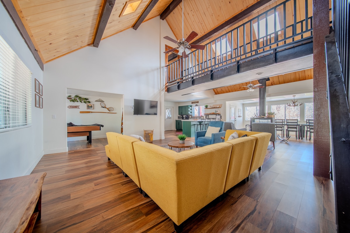 哇...當您踏入我們獨一無二的小屋時,這將是您腦海中第一個想法。 這間小木屋從頭開始專業設計,具有以下特點: -主小屋有三間臥室、兩間衛浴和樓上閣樓,有六張雙層床,可容納12人。 -獨立車庫設有遊戲廳和遊戲室。 -車庫上方是一間私人單間公寓,設有自己的廚房、浴室、加大雙人床和洗衣房,可容納兩人(需額外收取97美元)。