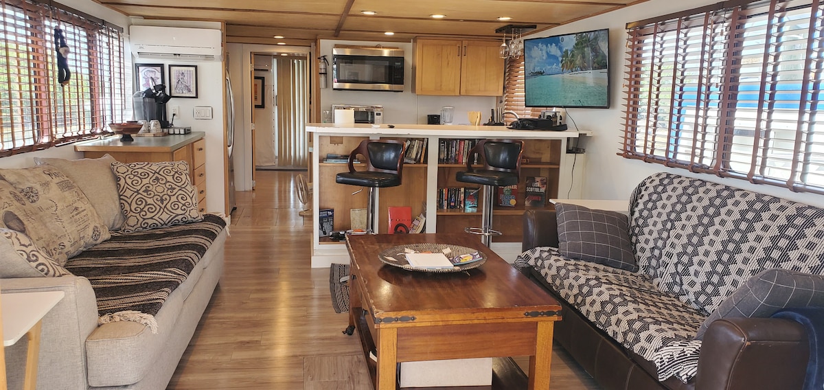Enjoy a unique and peaceful stay on our cozy houseboat in Key West. Perfect for couples or small families who want a relaxing water experience close to town. Comfortable sleeping area, deck space, and beautiful sunset views. Check-in is by appointment with personal captain meet-and-greet and boat transfer from the marina. A memorable island stay surrounded by nature and ocean air.