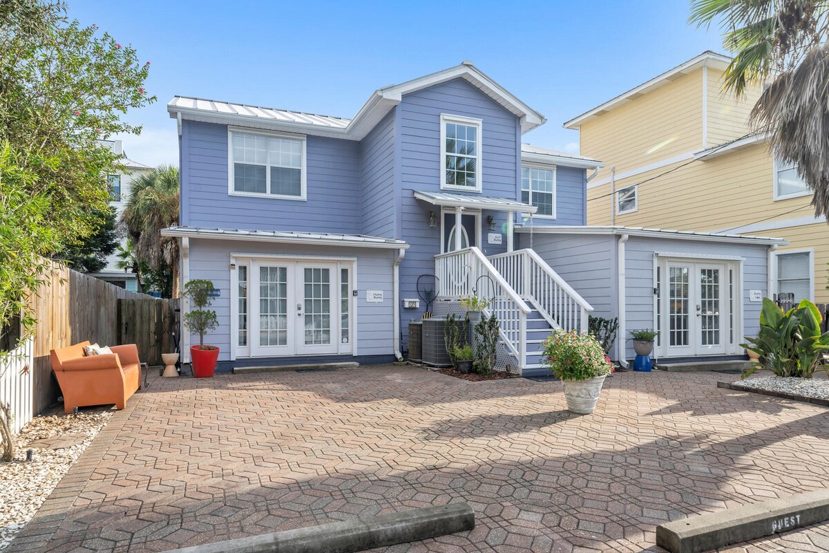 歡迎來到您的海灘度假屋!美麗的房子,步行即可抵達(1.5英里。1.2英里是步行穿過堤道,兩側有受保護的路徑)納瓦爾海灘的糖白沙、納瓦爾聲音的波浪、許多餐廳等! 設備豐富!兩個有頂露台可供放鬆,火坑可供舒適的夜晚放鬆,門廊上有螢幕和室外照明。在一天結束時,享受騎自行車前往海灘或在後院吊床上打盹。可容納6人入住。