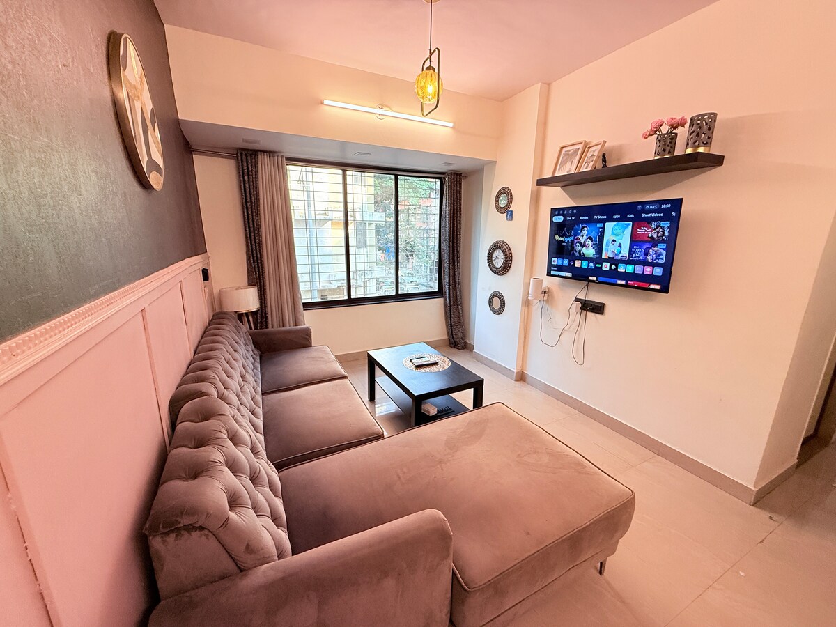 享受我們位於孟買Khar West連接路的新服務式公寓 這間豪華的 2 間臥室公寓配有豪華的高級家具、高速 Wi-Fi 和私人陽台。 位於充滿活力的街區,所有寶萊塢名人都住在附近,輕鬆前往餐廳、購物和夜生活。非常適合家庭、度假、公司和醫療住宿。 歡迎預訂,期待您的蒞臨!