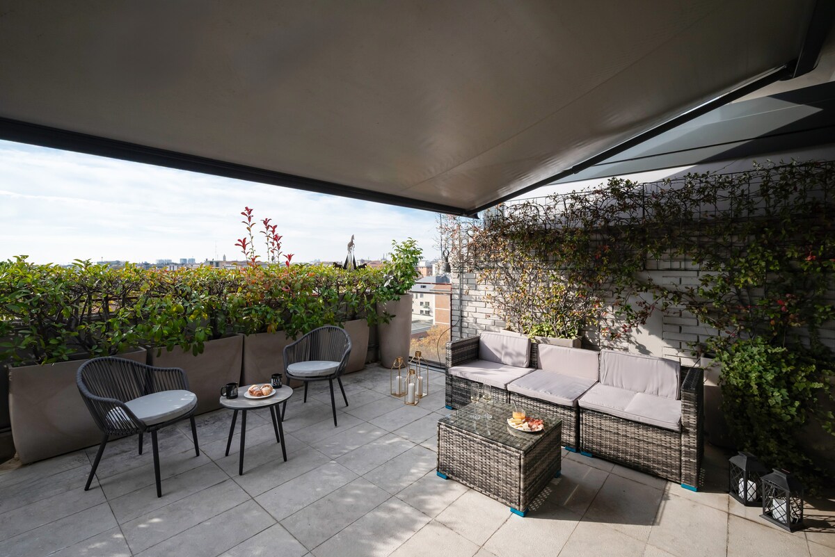 位於米蘭市中心的獨家三層頂層公寓。 明亮而精緻的空間,配有全景露臺,讓您享受獨特時刻。 舒適的房間和廚房,配有酒窖。 快速Wi-Fi、整個房子的冷氣和室內吊臂讓住宿實用和放鬆。 距離Duomo、Navigli和Bocconi僅幾步之遙,這是一個充滿魅力和設計的綠洲,讓您體驗米蘭的美好風格。