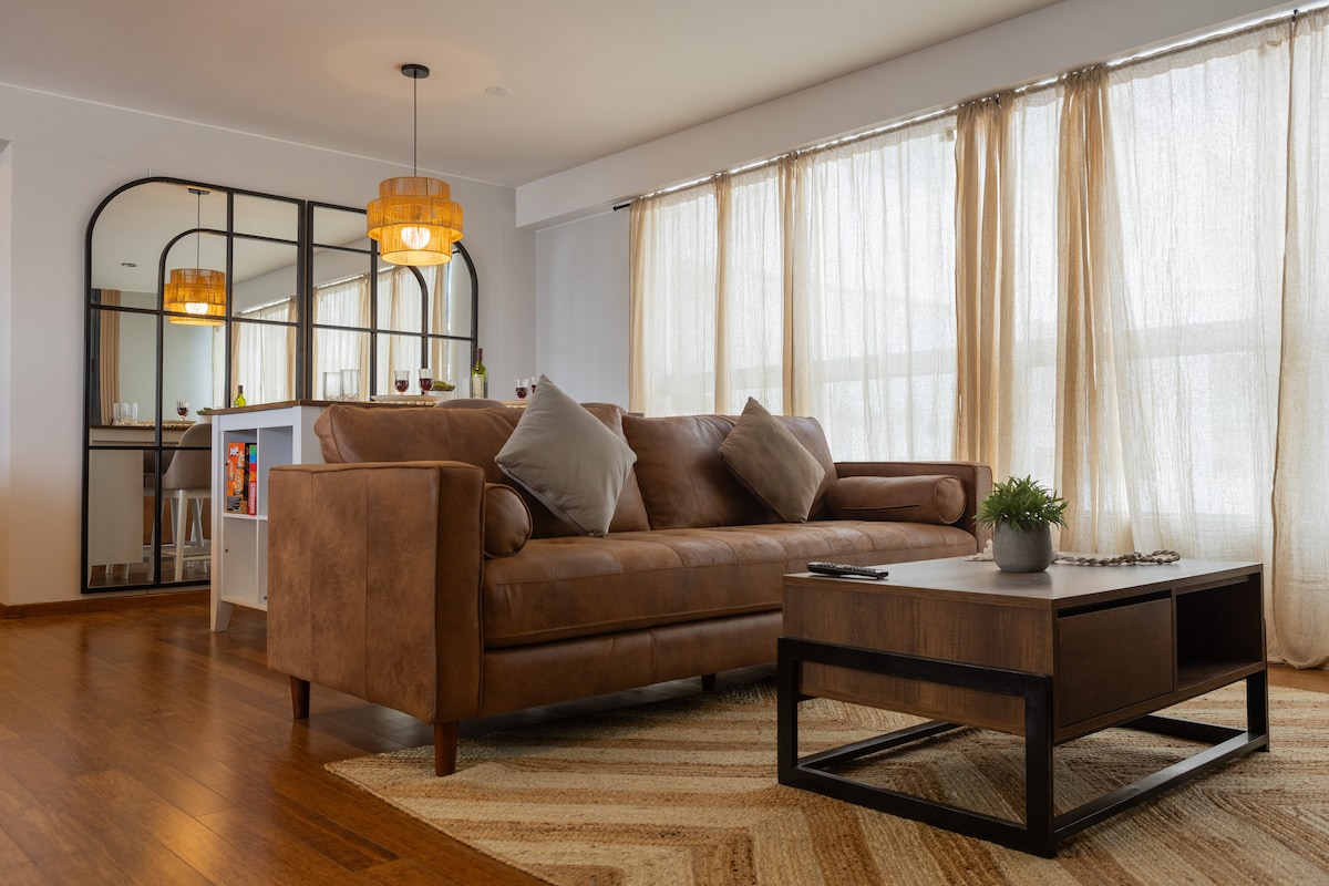 在這個獨特而安靜的度假勝地放鬆身心。 在Miraflores獨家區域的舒適公寓中度過美妙的幾天,欣賞美麗的海景。 您會發現自己非常靠近Miraflores燈塔、Larcomar、French Kiss和各種旅遊景點。 設備齊全,為您提供極佳的住宿體驗,非常適合情侶入住。