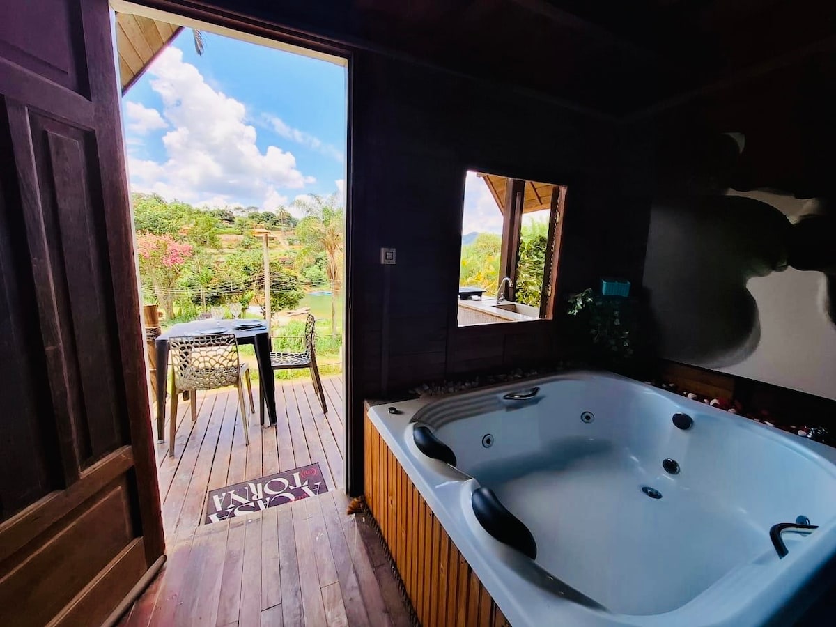 配有按摩浴缸的Chalé do Beijo