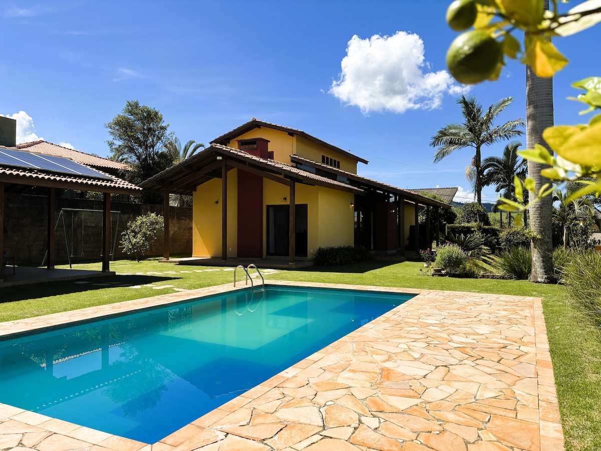 Vista e pôr do sol | Piscina, lareira e 4 suítes