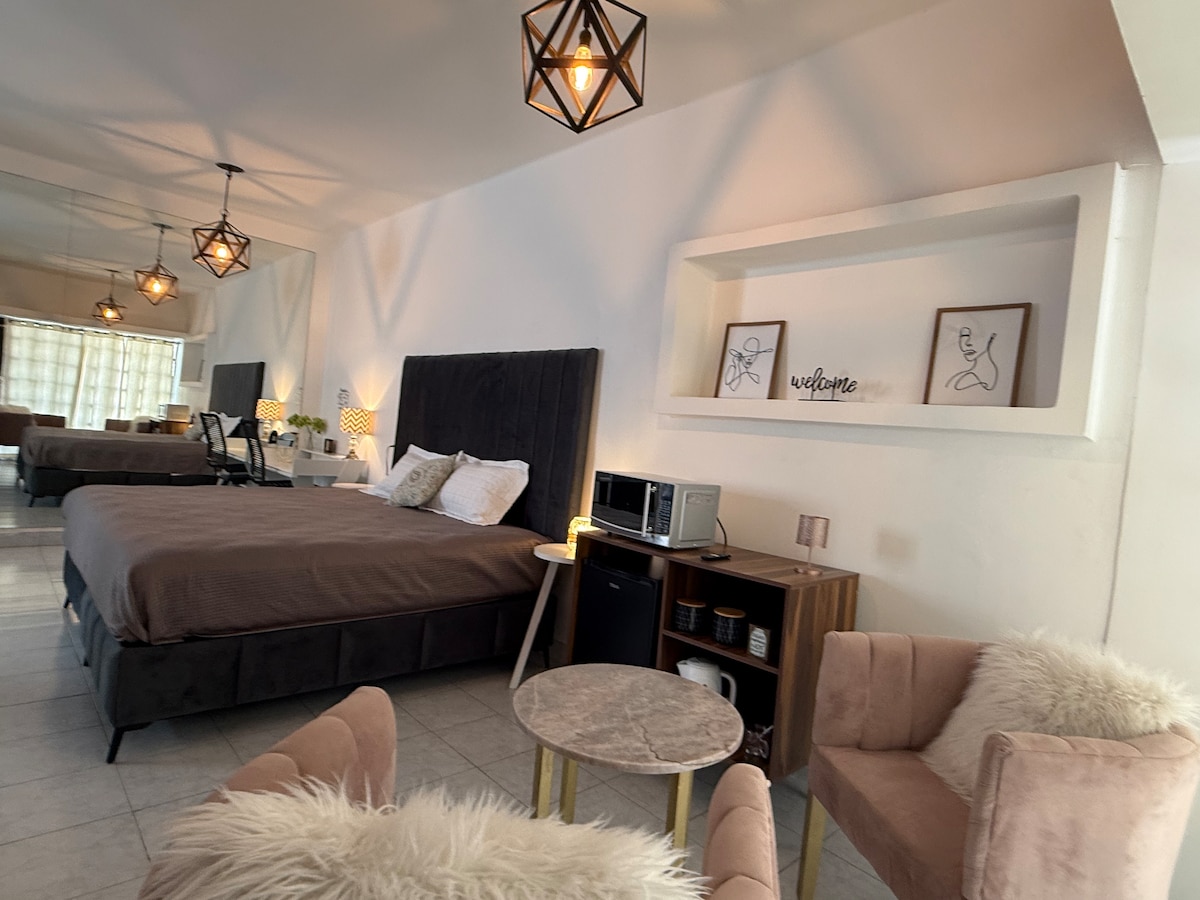 Departamento de lujo en colonia tranquila, aislado del ruido y rodeado de áreas verdes. Con amplios espacios interiores, acabados de primera calidad y cochera techada para dos autos con reja. Cuenta con Wi-Fi de alta velocidad, aire acondicionado en todo el departamento y ubicación céntrica, cerca de restaurantes, tiendas y servicios. Ideal para ejecutivos, parejas y estancias largas que buscan comodidad, privacidad y exclusividad.