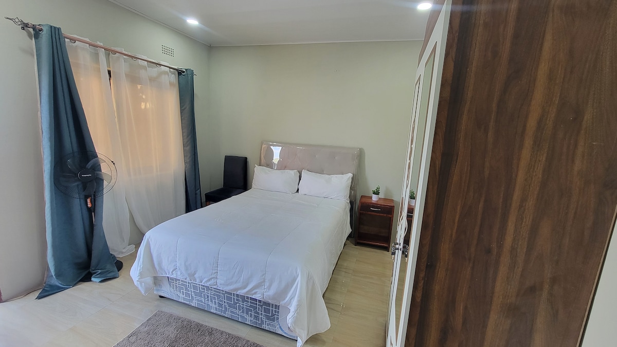 這個地方安靜祥和。 這是一個放鬆和放鬆的絕佳場所。 乾淨且維護良好。距離Levy Mwanawasa體育場和中國購物中心4公裏,距離雙馬車道體育場景觀區1.9公裏。 它有良好的圍欄和安全。