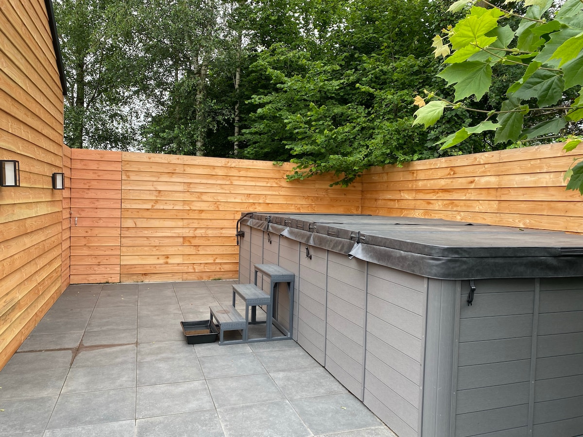 B&B De Zandhoef 位於森林邊緣,距離風景如畫的 Eersel 村 3.5 公里。這間美麗的小屋最多可容納4位房客。您可以使用自己的私人6人按摩浴缸。我們的後院有山地自行車和徒步小徑,非常歡迎您租用我們的電動山地車或山地車來試用。天堂中的好地方。很快見