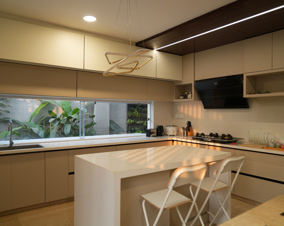 🏡 Your Ideal Home Away From Home Welcome to this stylish and spacious 2.5 BHK haven, perfectly tailored for your next getaway or business trip. It features a Dedicated Workstation with a desk and high-speed Wi-Fi, making it an ideal retreat for WFH or productive work trips. Whether you're traveling as a family, a couple, or a business traveler, you'll find everything you need to relax and unwind in this serene setting. Relax with the whole family at this peaceful place to stay!