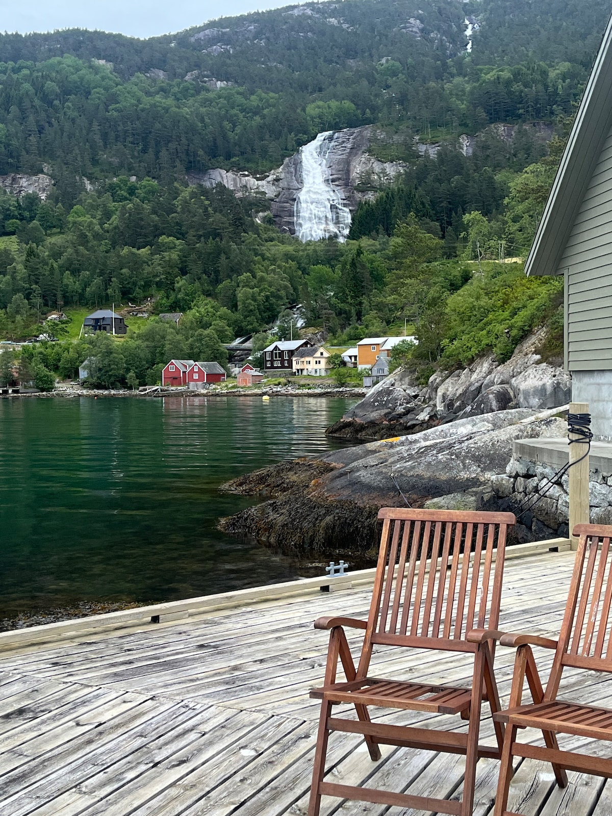 Overlooking rows of sweet cherries. plum and apples you will find this multi-generational working farm nestled in the Hardangerfjord. With a stunning view of the fjord and Folgefonna glacier from the balcony, we are close to Trolltunga. We offer newly built private accommodation with three bedrooms and all the modern conveniences in a country setting.