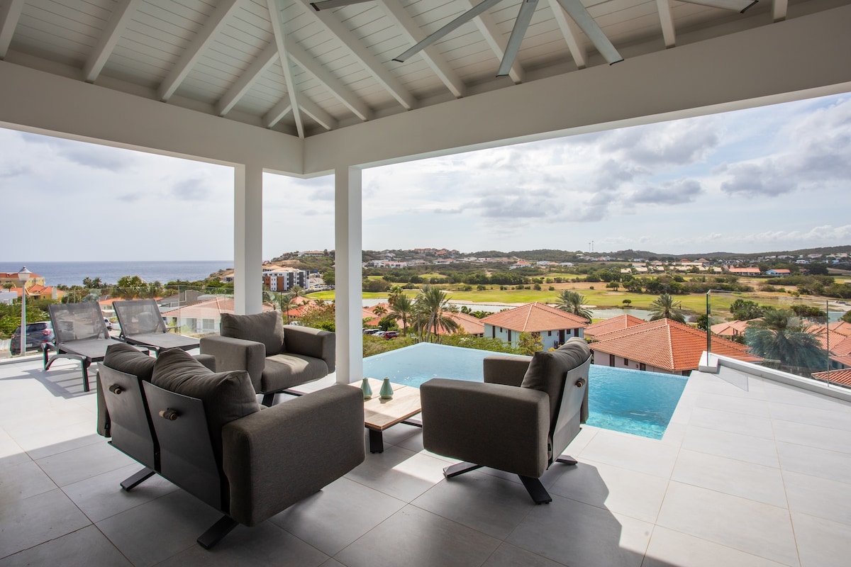 The most spectacular giant stylish villa of the Caribbean on this colorful island. Dazzling spacious. Sophisticated interior design featured in lifestyle magazines. Views to die for. Quality gallery modern Art-work. Located on top of the hillside of chic secure gated community Jan Sofat at the Spanish Water Bay. All your guests together in one jet-set villa. For your dream wedding, yoga retreat, anniversary get-together, fashion shoot or luxury stay with friends and family.