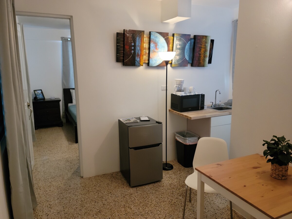 Perfect cozy coastal cottage be it if it's for singles, career individuals and couples seeking a place to come relax during their stay in Ponce. Less than 1 min walk to the "bahia" where you can enjoy the breeze of the Caribbean Ocean, visit nearby cafés, restaurants or simply enjoy chatting with the locals in the Plaza 65 Infantería. Located perfectly less than 10 minutes from Hilton Casino & Golf Club, Walmart, Plaza del Caribe Mall, Centro del Sur Mall and much more.