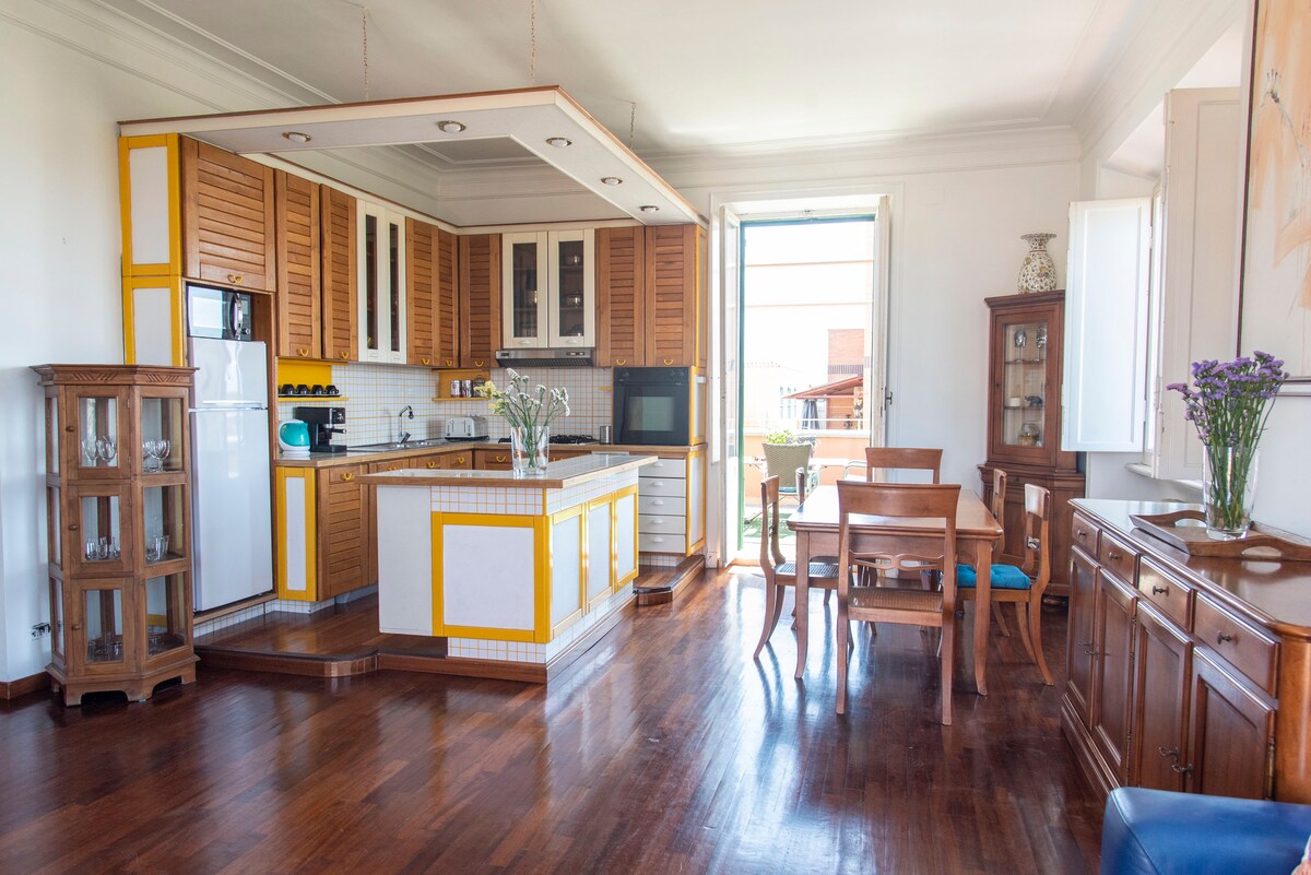 您是否想遠離羅馬的喧囂? 我們位於弗拉斯卡蒂(FRASCATI)貴族建築的獨家頂層公寓以超過100平方公尺的全景露臺、令人驚嘆的羅馬景觀(晴朗的日子,可看到海)和羅馬城堡的寧靜歡迎您。 想像一下,醒來時可以看到永恆之城的景觀,並在露臺上享用燒烤早餐,探索歷史悠久的別墅,並在晚上在葡萄園享用晚餐。 羅馬?火車30分鐘。 體驗卡斯特利羅馬尼的風格 我們期待見到您!