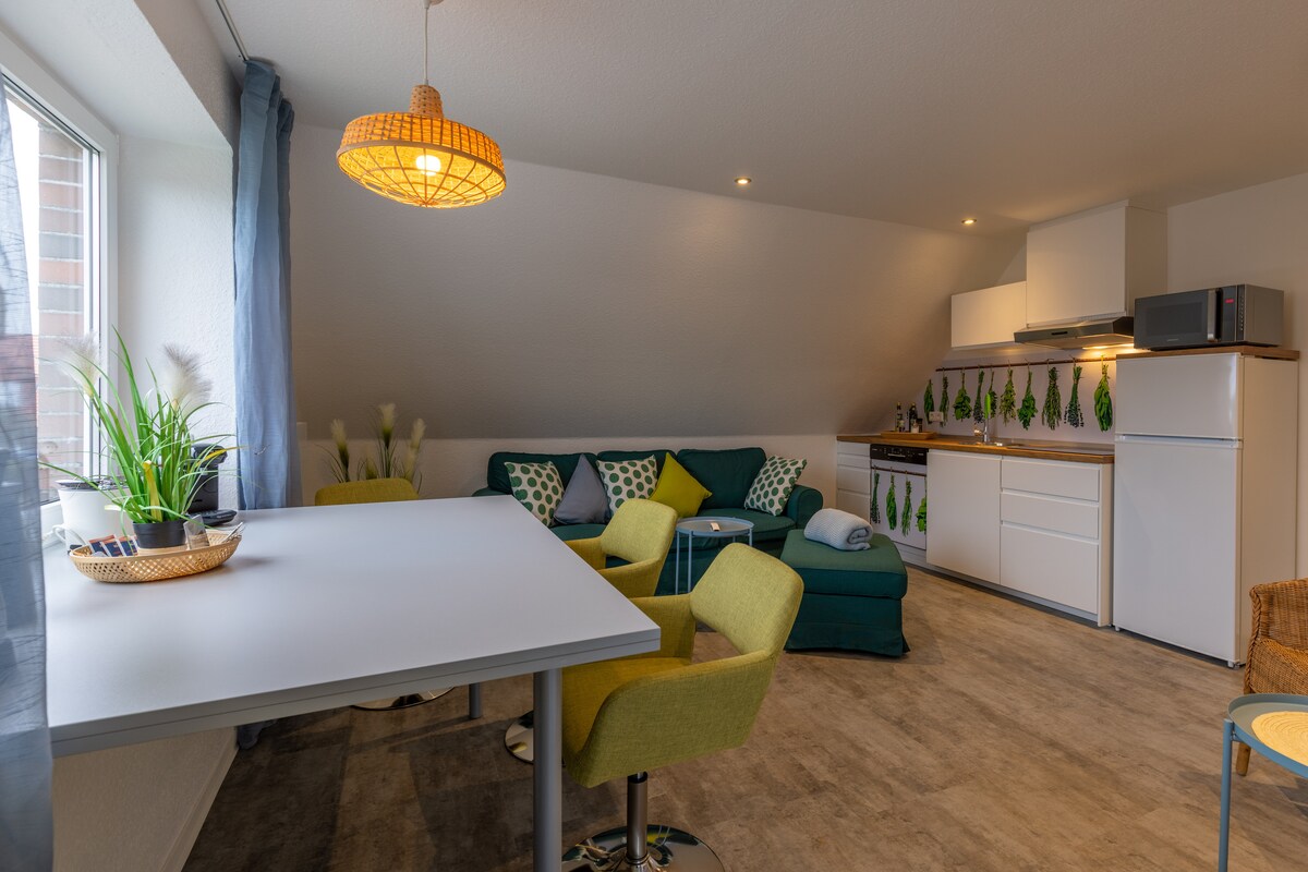 我們的公寓位於一個舊的且經過大規模翻新的Gulfhof的前起居區,位於堤壩腳下,在一個自然保護區中。高高的天花板、粗大的樑、大型木製木窗戶,可欣賞東弗里斯蘭景觀,現代裝飾,注重細節,使這間公寓成為放鬆身心的好地方。