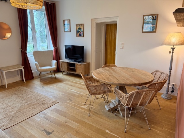 Très bel appartement au 2ème étage d'une maison bourgeoise du XIXème siècle, au coeur d'un parc centenaire, recommandé par Le Petit Futé. Une enclave enchantée en pleine ville, à moins de 5 minutes à pied de la gare et du centre touristique. Les 2 chambres, très spacieuses, comportent chacune un lit 160x200 et un bureau. Un vaste canapé offre le 5ème couchage. Une cuisine entièrement équipée, ouverte sur le salon, vous propose un espace à vivre idéal pour apprécier le copieux petit - déjeuner.