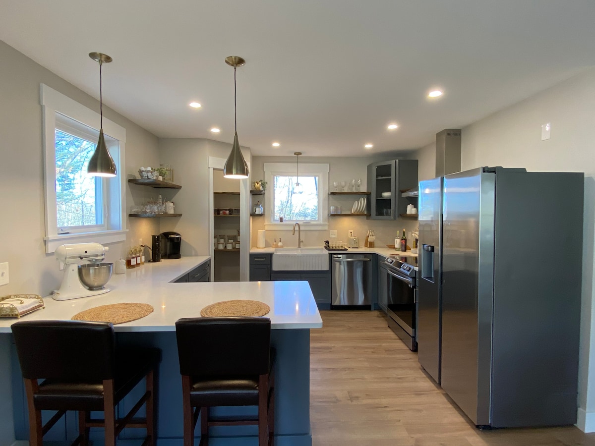 在這個設計時尚又安靜的空間中好好放鬆身心。一個安靜的度假勝地,藏在森林中,坐落在小溪旁邊,所以總是有水聲和夜間的窺視者。房源坐落在接近4英畝的林地、美麗的石牆上,開車20分鐘即可抵達滑雪、徒步旅行或湖泊,無論季節如何,都非常完美!注意:從廚房區域到客廳有一個台階,淋浴間有一個台階。獨立入口,舒適的森林隱藏。 非常適合遠距工作!