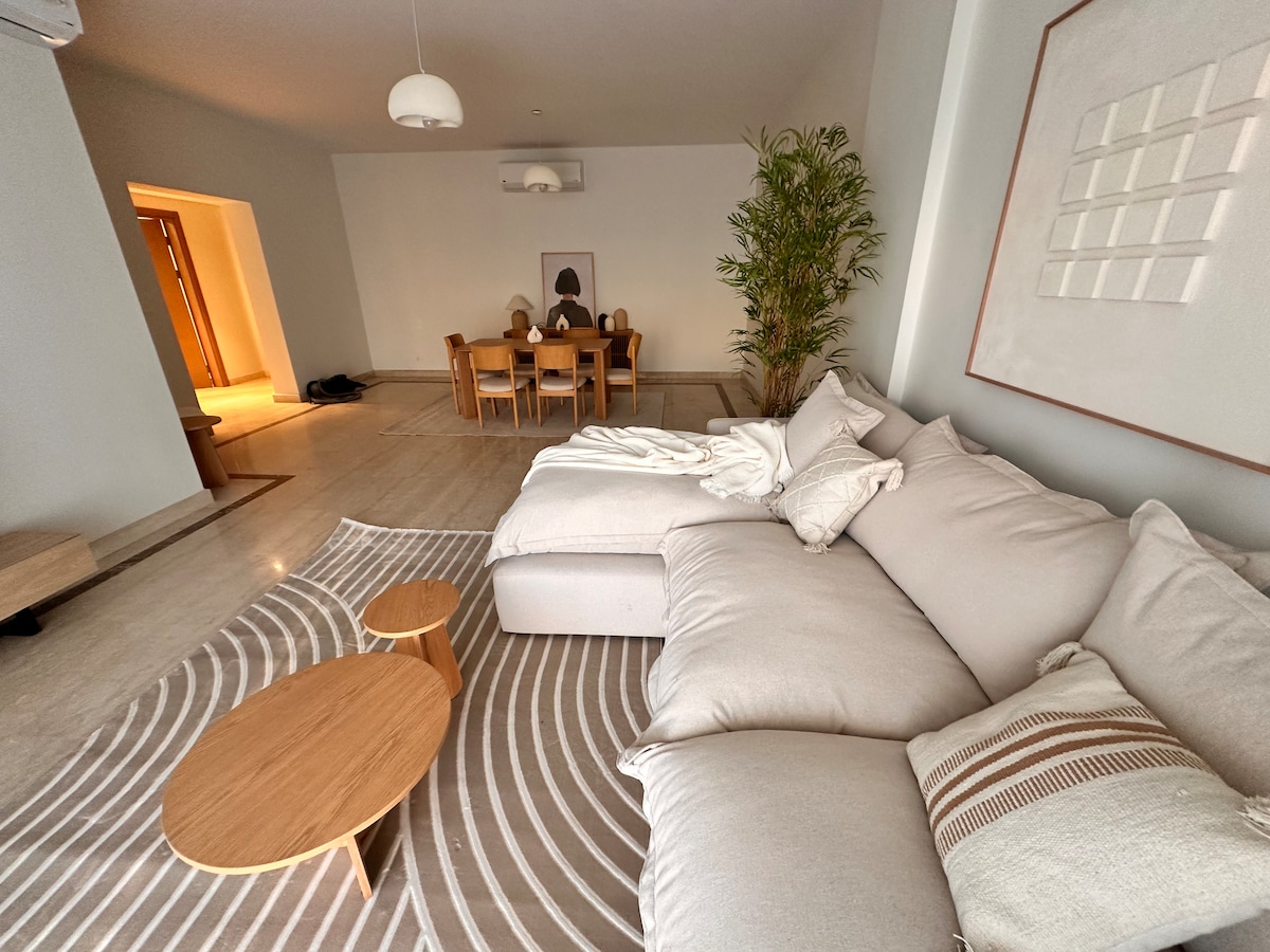 在新開羅24小時全天候安全的大樓中,體驗這間3間臥室公寓的奢華--距離機場25分鐘。 配有主臥室、智慧電視、高速Wi-Fi和高級家具,配有豪華餐具。 享受共用泳池、綠地和美景。 靠近頂級商場、電影院、餐廳和您所需的一切。 非常適合家庭或商務差旅,立即預訂您的住宿