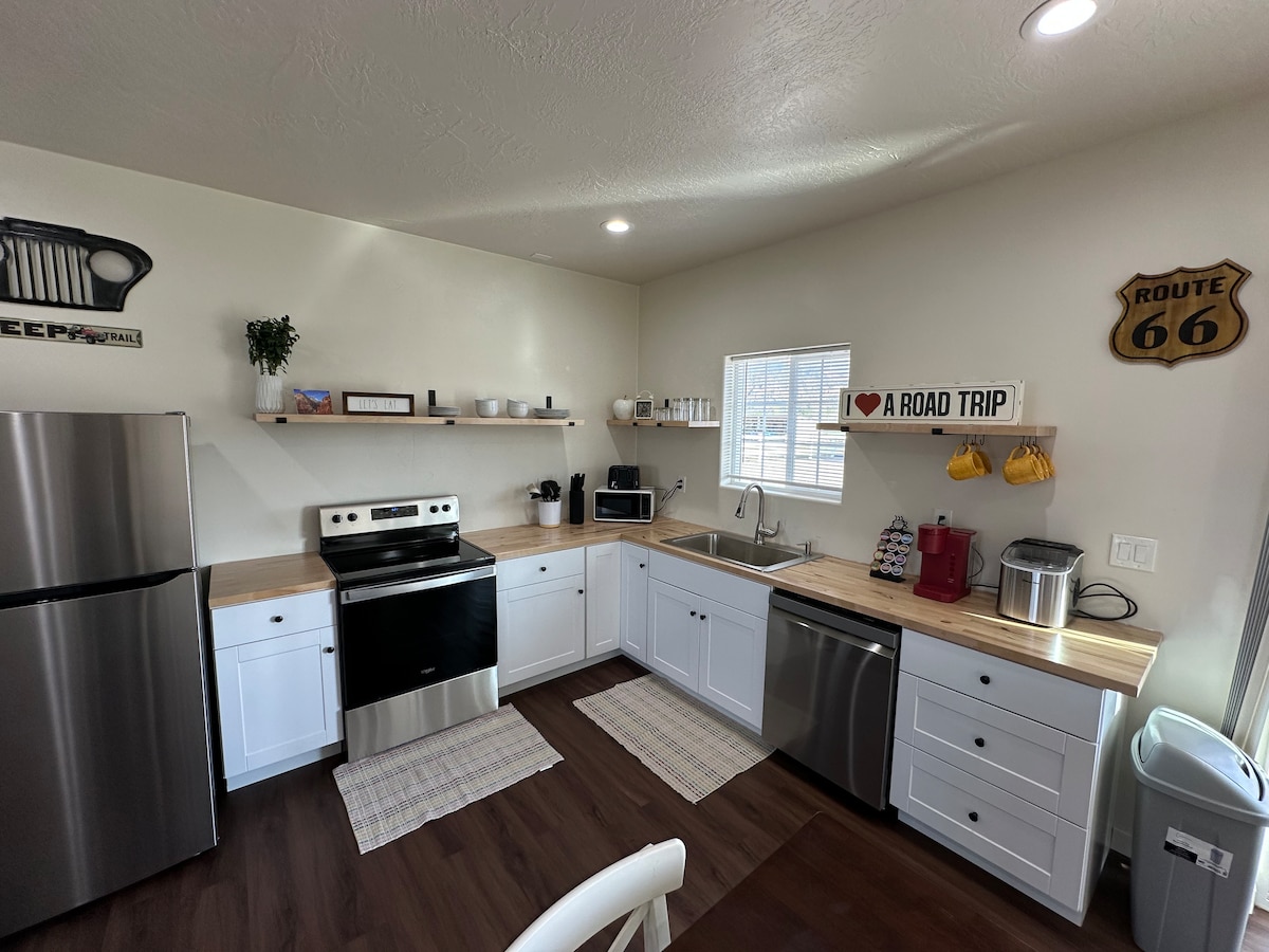 Road Trippers Retreat at kanarraville falls is the perfect place to relax after seeing all the natural beauty in southern Utah. Including the world famous Kanarra Falls, which is located less than a mile away. Other world famous sites that are located within a short drive are, Zions National Park (50 mins), Kolob Canyon National Park(15 mins), Bruce Canyon National Park (1.5 hrs), along with many local trails and sites. This unit is on the ground floor with a separate unit above on the 2nd floor